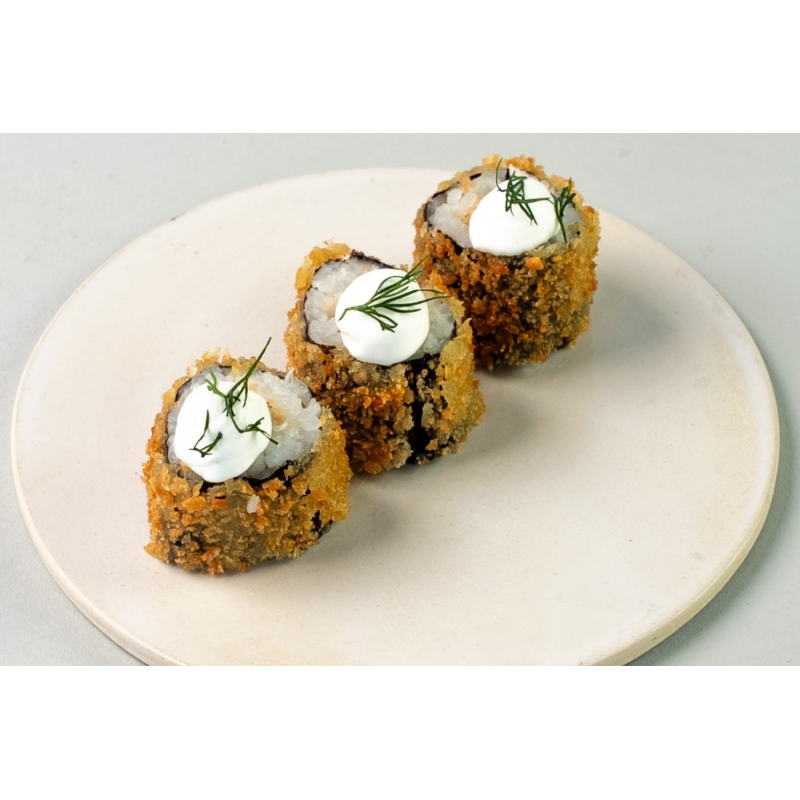 Maki frit thon cuit, aneth et chantilly de wasabi
